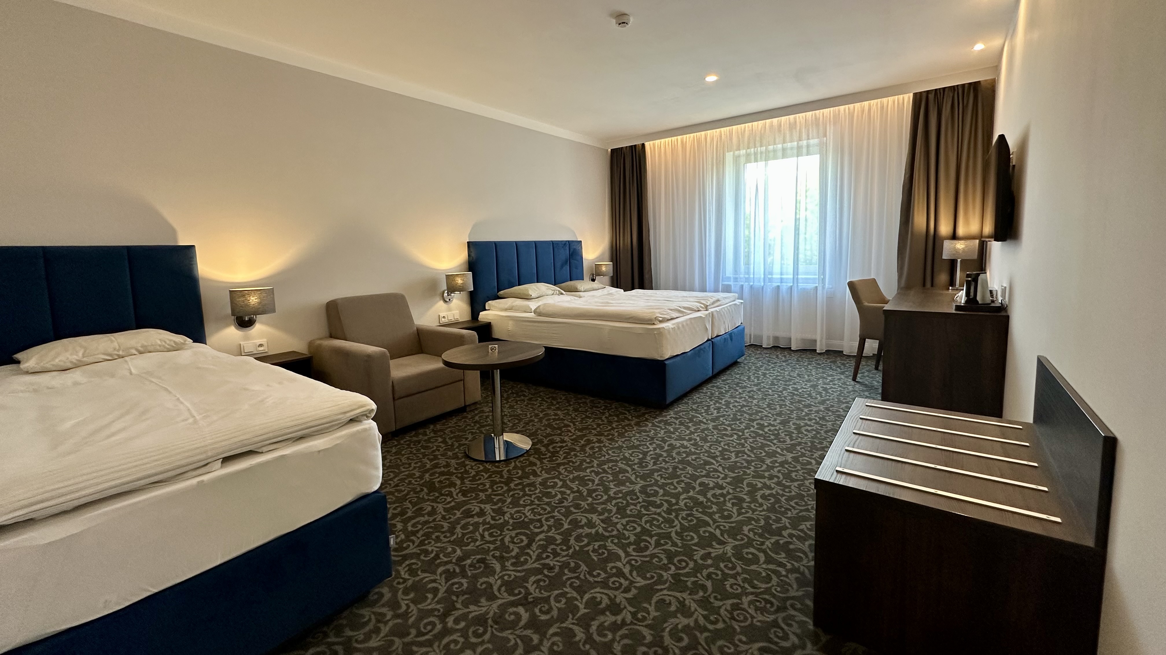 Naše pokoje Deluxe nabízí hostům nejvyšší komfort a soukromí. Každý pokoj je vybaven vlastní moderní koupelnou, pohodlnou manželskou postelí, TV a posezením pro váš odpočinek. Samozřejmostí je Wi-Fi zdarma a možnost parkování přímo u penzionu. Pokoje Deluxe jsou ideální volbou pro páry nebo hosty, kteří si chtějí pobyt v Karlových Varech užít naplno a ocení více pohodlí i klidnou atmosféru.